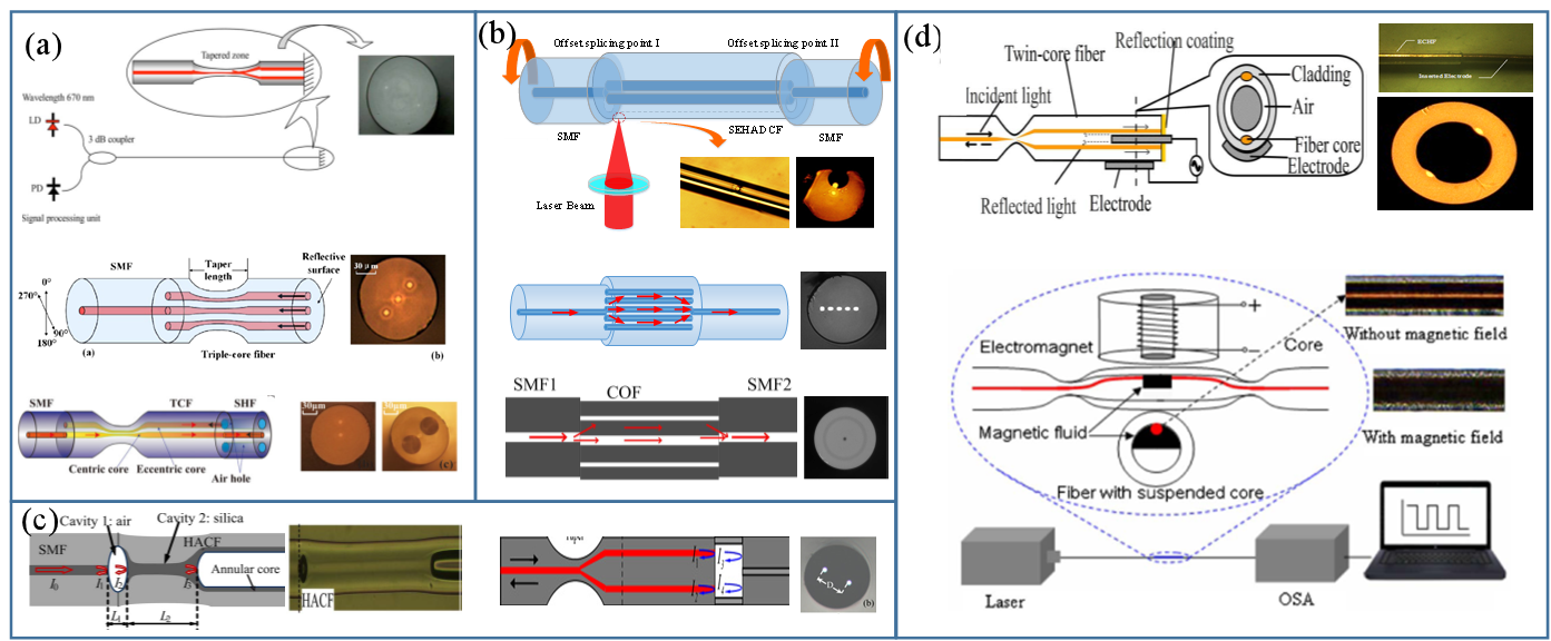 团队提出了多种全光纤组合式干涉仪,实现了干涉仪单纤内部高度集成,发现通过光纤内部波导集成的干涉仪可以解决分立光路中的温度补偿问题;
