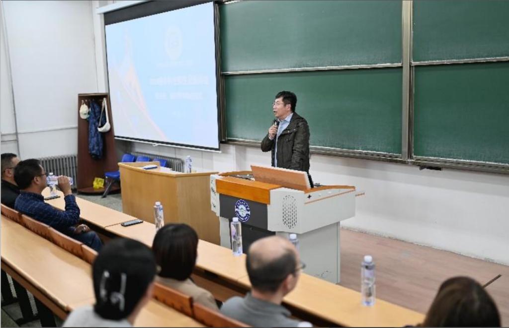 学院党委书记高峰代表院长向老师同学们问好,并以学院总体情况、人才培养、榜样学习三个方面向全体新生介绍了学院、专业与学科历史沿革,师资力量,科研平台,以及人才培养、专业前景、成长路径等内容。