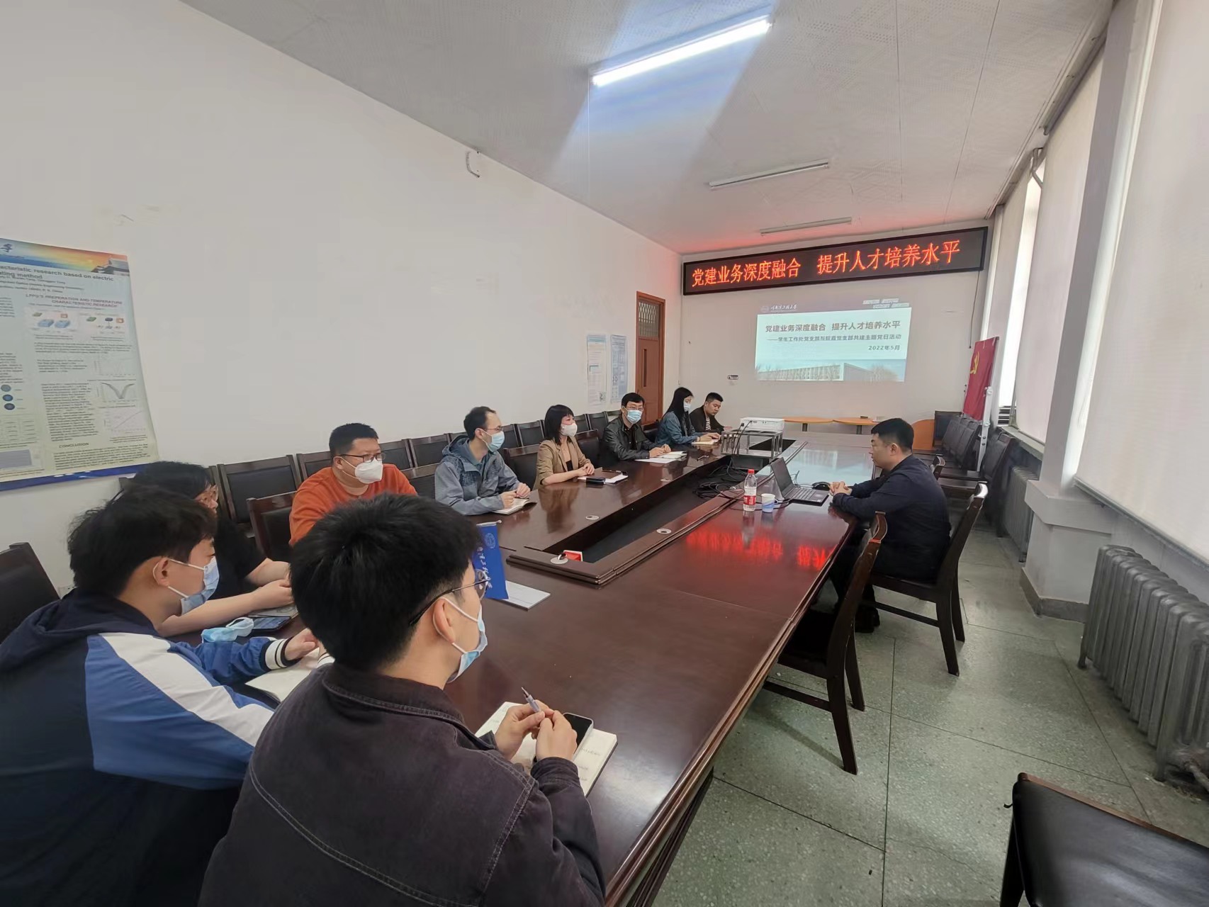 5月27日上午,在理学楼234会议室,tyc7111cc太阳成集团院直党支部与学生工作部(处)党支部以“融合三讲”活动为牵引,开展了“党建业务深度融合、提升人才培养水平”主题党日活动。本次活动由院直党支部书记董云吉主持,学工部(处)副部(处)长潘强,物理学院党委副书记吴岚出席,院直党支部全体党员参加。