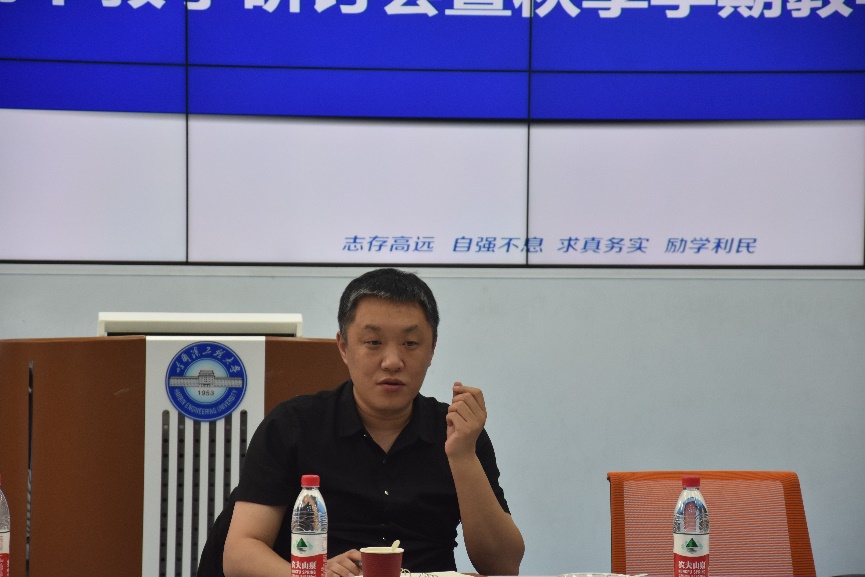 中心副主任姜海丽教授对基础教学研究中心成立以来的阶段性成效、教学工作思路以及举措进行了说明,分享了自己成长的经历,在怎样备课、教学资源选用、课堂节奏把握等方面也提出了指导性的建议,并且鼓励青年教师在教学的同时也应勇于进行教学改革、课程建设等方面积极创新实践。