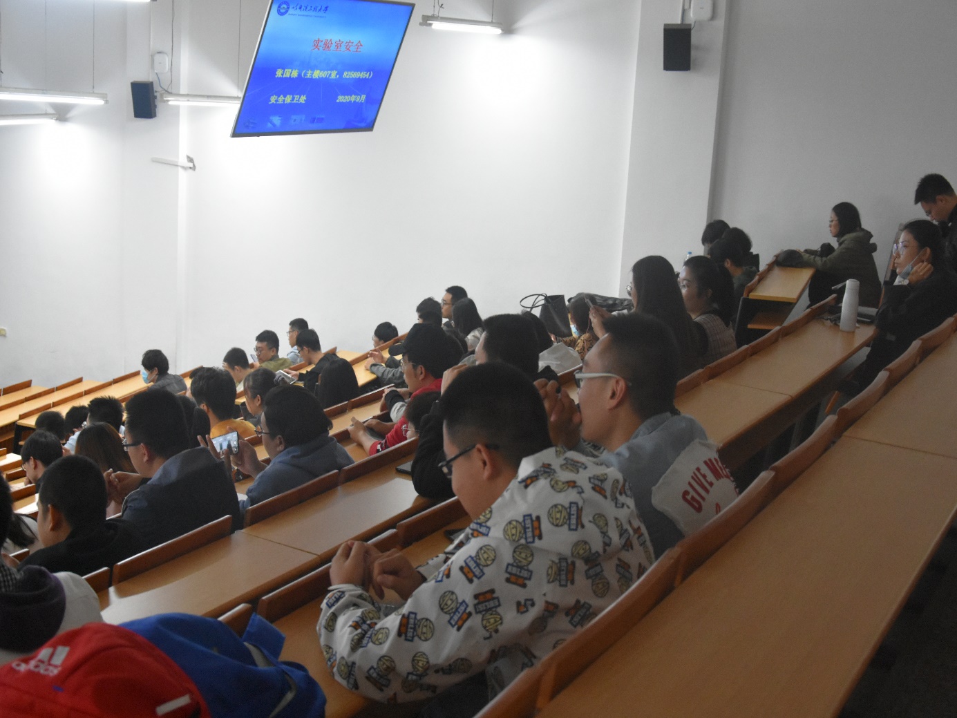 为加强学院安全工作,增强师生安全意识,防止安全事故的发生,9月30日下午,我院与校安全保卫处联合举办了一场主题为“消除事故隐患 筑牢安全防线 ”的安全基础知识讲座,讲座分别从实验室安全防护,日常消防常识两个方面为大家进行了详细讲解。