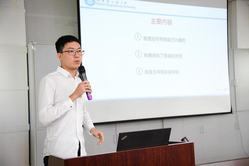 2019级的张津滔同学分享了在陈赓班的学习生活、团队活动,以及对未来科创目标的展望。他说,在陈赓班有许多科创机会,但自身的努力也至关重要。在暑假期间他与同学组队参加了全国海洋航行器设计大赛,对自己科创能力进行了实战检验。最终虽晋级校赛但未获国奖。校赛二等奖,是大一参赛队伍中奖项最高的团队。