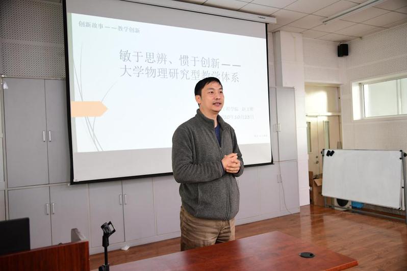 陈赓班任课教师赵文辉在《敏于思辨、惯于创新——大学物理研究型教学体系》的报告中,介绍了大学物理教研中心以学生学习、问题研讨为中心,知识习得、能力训练、价值引领并重,为陈赓班学生们打造全新的大学物理研究型教学体系。培养善于学习,勇于展示,敏于思辨,惯于创新的未来行业领军人才。
