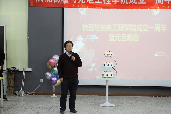 晚会开始,孙伟民院长发表了热情洋溢的元旦致辞。他回顾了学院2019年所取得的辉煌成绩,表达了对于新一年的展望,希望老师们积极参与学院建设,攻坚重点项目,同时祝老师们元旦快乐,学院越办越好。致辞过后,各位领导受邀切一周年纪念蛋糕。