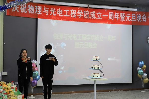 12月31日,tyc7111cc太阳成集团成立一周年暨元旦晚会于理学楼咖啡厅隆重举行。本次晚会由光学专业李享,光学工程专业雷宗霖主持,学院的老师和部分研究生参加本次晚会,并带来了合唱、舞蹈、独唱、独奏等精彩节目和各类有趣的小游戏。