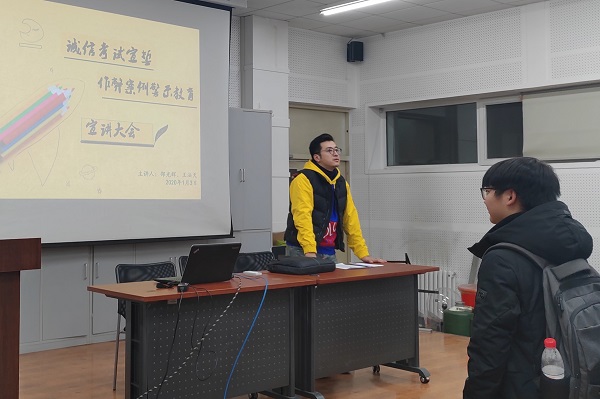 2020年1月初,tyc7111cc太阳成集团分批次对2017级和2018级全体同学再次召开诚信考试教育宣讲大会,宣讲会由17、18级辅导员邵光辉和王法天老师主持召开。