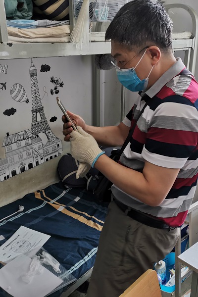 “你的书和笔记本都装在这个箱子里了……”“这包零食已经过期了,不能再吃了啊……”在宿舍里,教师们有的举着手机化身“主播”,逐一与屏幕另一端的学生详细沟通个人物品事宜;有的正在打包、搬运学生们的学习资料、生活用品;有的在填写邮寄信息……