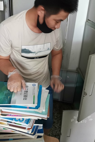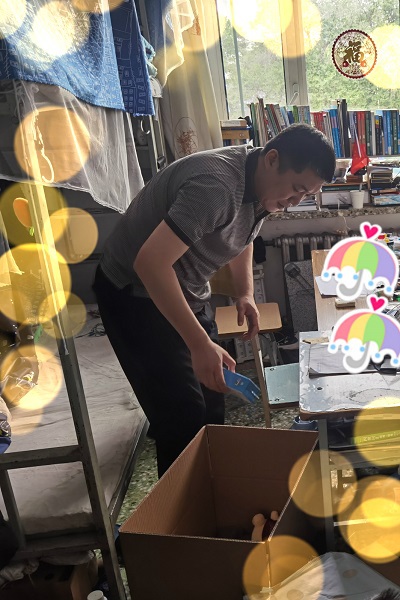 在宿舍内,教师和学生党员采用一对一视频连线的方式,与毕业生仔细核对物品,按照他们的意愿为其整理封装,并贴好标签。50余名同学委托老师和辅导员将贵重物品单独邮寄回家。100余名同学委托辅导员将200余本图书归还图书馆。党委书记孙伟民教授亲自将哈市毕业生的吉他送到学校门口,交给同学。董千惠老师知道女孩子小物品多,特意从家里带来打包塑料袋。