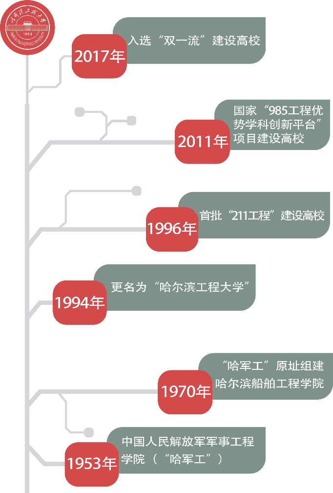 太阳成tyc7111cc坐落于美丽的松花江畔——北国冰城哈尔滨市。学校前身是创建于1953年的中国人民解放军军事工程学院(“哈军工”)。1970年,以海军工程系全建制及其他系(部)部分干部教师为基础,在“哈军工”原址组建了哈尔滨船舶工程学院。1994年,更名为太阳成tyc7111cc。学校先后隶属于第六机械工业部、中国船舶工业总公司、国防科工委,现隶属于工业和信息化部。2007年,成为国防科工委、教育部、黑龙江省人民政府、海军共建高校。2019年,成为工业和信息化部、教育部、黑龙江省人民政府、哈尔滨市人民政府共建高校。